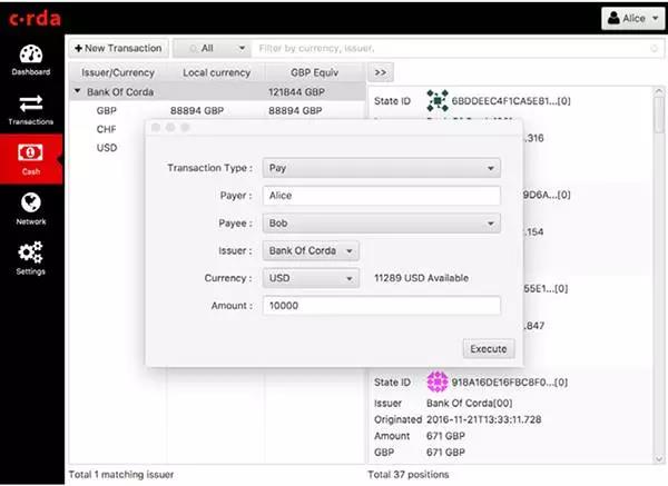 系统中还可以有另一个状态,就是“Alice拥有3000美元”,这是Alice参与的另一个交易产生的输出。假定系统中不再有任何Alice拥有某种资产的事实存在的话,那么从现实世界的角度看,可以认为Alice拥有8000美元。但是,Corda系统中并不存在“Alice拥有8000美元”这一事实,只有前述两个事实。熟悉“类区块链”系统的人都知道,在一个UTXO模型的系统中,Alice只有跟自己做一次交易,以前述两个状态作为输入,才能产生一个新的“Alice拥有8000”美元的状态。与此同时,前两个状态在系统中也就失效了。
