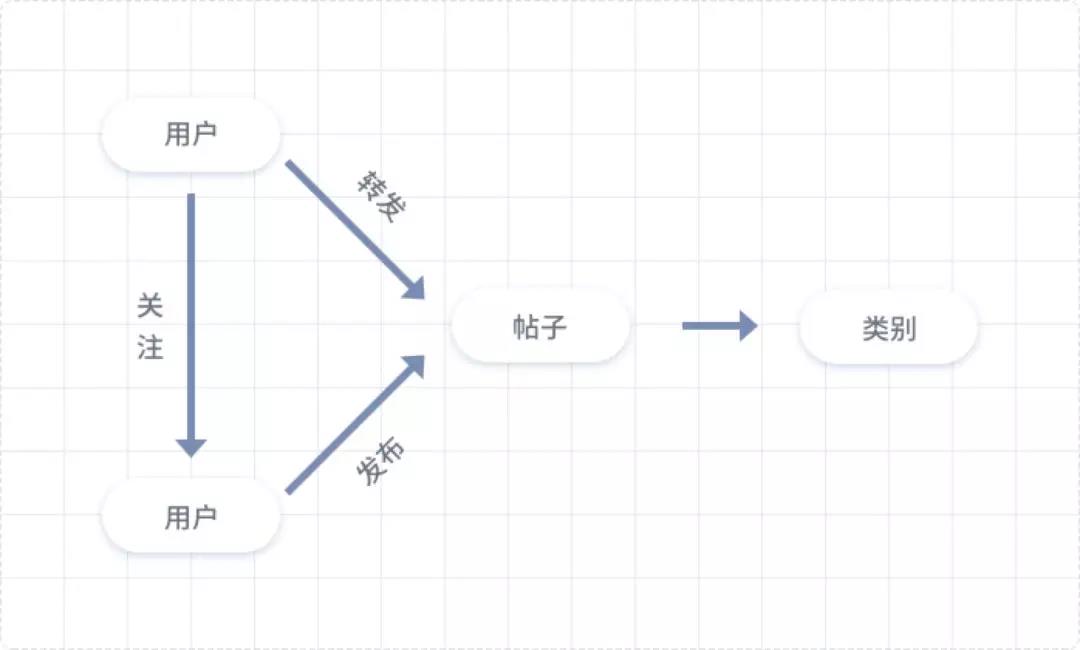 上面的图谱刻画社交网络中各个节点以及它们之间的关系,用户A、用户B、帖子都是节点,用户与用户之间的关系是关注,用户与帖子之间的关系可能是发布或者转发。通过这样一个图谱,可以分析用户对什么人、什么事感兴趣,进一步实现推荐机制。