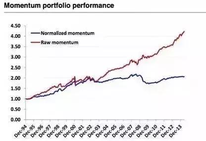 如下图所示,蓝线是去除了异常值后的组合表现,红线是原始数据。我们可以看到原始数据的动量策略要远远好于去除异常值后的策略表现。也就是说异常值包含了很大一部分信息,如果我们在做标准化时去除了异常值,我们就相当于损失了很大一部分信息。因此,最好的办法是对数据进行微观层面的聚合然后再计算总的指标。