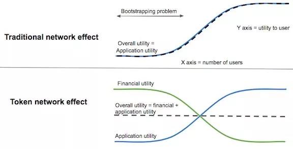 ChrisDixon在2017年的另一篇文章《加密通证:开放网络设计的重大突破》中说明了通证化实际上可以让网络的发展速度快于网络效应中的速度:
