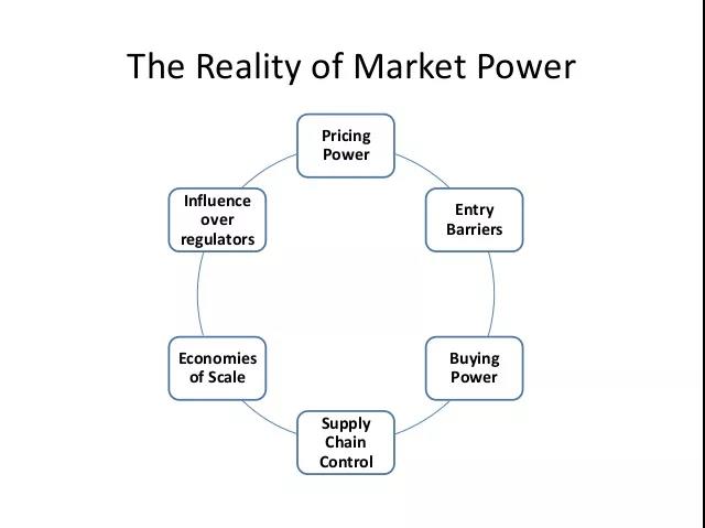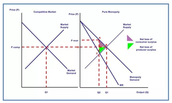 “当用户或客户没有其他相当的商品或服务来源可以选择时,就会形成市场势力。这种情况下,卖家就有能力提高自己的定价,网络巨头也能够向参与者们收取交易费用、编译并出售用户数据,而所有这些都是用户访问平台必须服从的条件。”网络效应使私人企业获得市场势力。市场势力使私有企业获得了定价能力。定价能力使企业可以从他们的用户身上剥取比在经济最优化情况下更多的租金,这就导致了我们大家都知道的基础经济学课程(Econ101)中出现的经典无谓损失场景。
