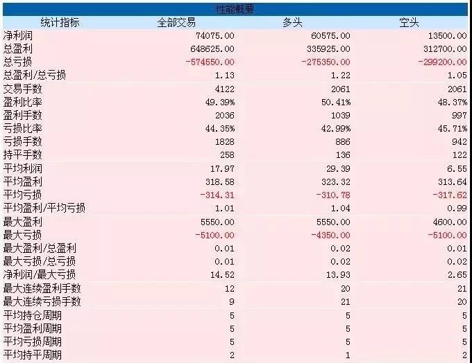 交易策略的几何年化收益率/最大回撤的比值在2以上。对于一些粗糙模型,在单个品种上很难让几何年化收益率/最大回撤这个比值大于2,如果在相关度低的多品种上进行组合投资,使组合投资报告上的几何年化收益率/最大回撤这个比值大于2,也是可以的。下面的策略长期能赚钱,那才不正常。