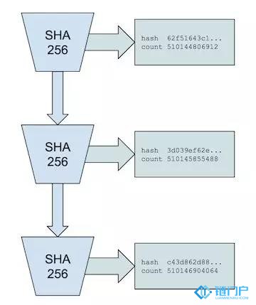 VDF 的一个特定实现使用了持续运行于其上的顺序抗预映射哈希(Pre-image Resistant Hash),其中前一次循环生成的输出将用于下一次循环的输入。计数和当前输出形成周期性记录。