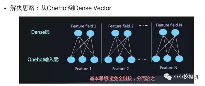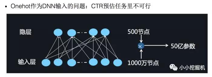 我们之前也介绍过了,对于离散特征的处理,我们使用的是将特征转换成为one-hot的形式,但是将One-hot类型的特征输入到DNN中,会导致网络参数太多: