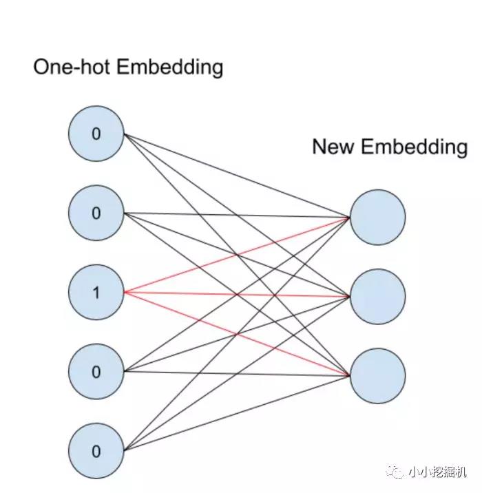 假设我们想要找到2的embedding值,这个值其实是输入层第二个神经元与embedding层连线的权重值。