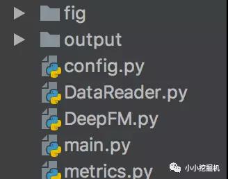 其实还应该有一个存放data的路径。config.py保存了我们模型的一些配置。DataReader对数据进行处理,得到模型可以使用的输入。DeepFM是我们构建的模型。main是项目的入口。metrics是计算normalized gini系数的代码。
