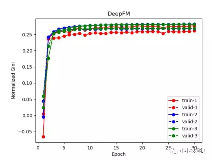 前面提到了,我们用logloss作为损失函数去进行模型的参数更新,但是代码中输出了模型的 Normalization 的 Gini值来进行模型评价,我们可以对比一下(记住,Gini值越大越好呦):