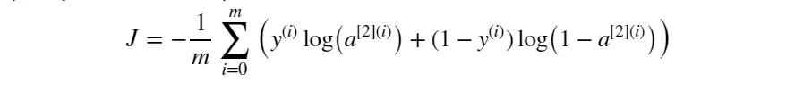 # Cost function. Inputs: "A2, Y, parameters". Outputs: "cost". cost = compute_cost(A2, Y, parameters)