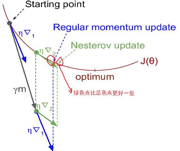 只计算当前这点的梯度,超前一步,再往前跑一点计算会更准一些。