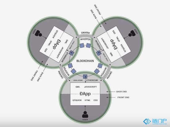 在某种意义上说,DApp就是:一个分布式的,应用+智能合约。取代了传统意义上的服务器端。
