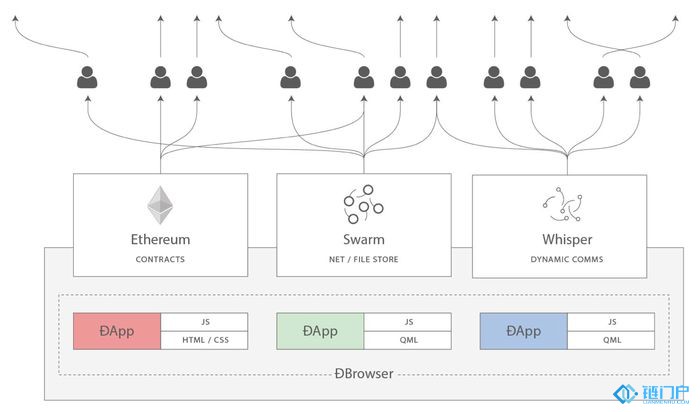 我们既然有了分布式的:应用+智能合约,也有了配合智能合约存储数据的Swarm,那在这个分布式的平台,我们需要一个机制来同步信息。这就是Whisper的作用。