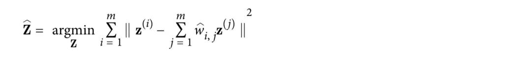之间的平方距离尽可能的小。这个想法让我们提出了公式8-5中的非限制性优化问题。它看起来与第一步非常相似,但我们要做的不是保持实例固定并找到最佳权重,而是恰相反:保持权重不变,并在低维空间中找到实例图像的最佳位置。请注意,Z是包含所有