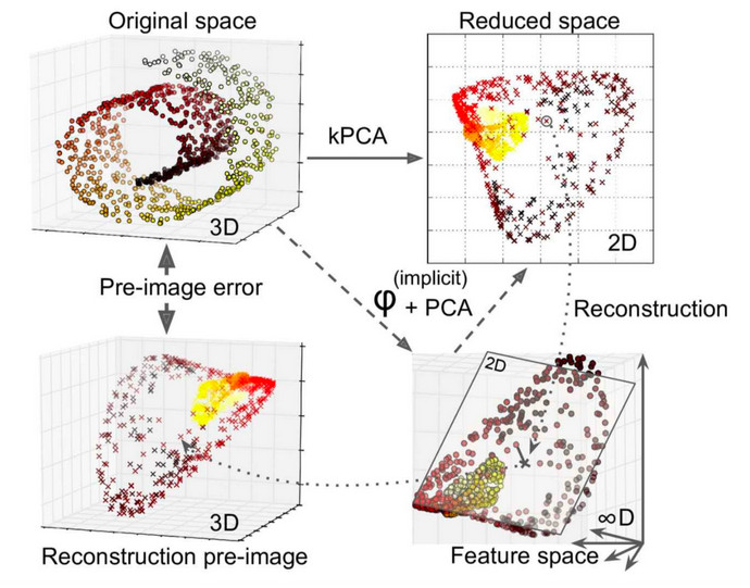 rbf_pca = KernelPCA(n_components = 2, kernel="rbf", gamma=0.0433,fit_inverse_transform=True)X_reduced = rbf_pca.fit_transform(X)X_preimage = rbf_pca.inverse_transform(X_reduced)