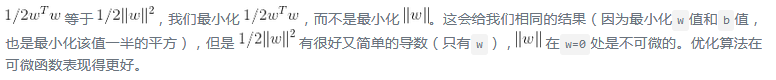 首先,关于符号的约定:在第 4 章,我们将所有模型参数放在一个矢量θ里,包括偏置项θ0,θ1到θn的输入特征权重,和增加一个偏差输入x0 = 1到所有样本。在本章中,我们将使用一个不同的符号约定,在处理 SVM 上,这更方便,也更常见:偏置项被命名为b,特征权重向量被称为w,在输入特征向量中不再添加偏置特征。
