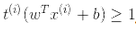 ,从而获得大的间隔。然而,如果我们想要避免间隔违规(硬间隔),对于正的训练样本,我们需要决策函数大于 1,对于负训练样本,小于 -1。若我们对负样本(即