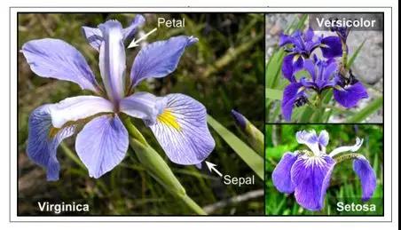 我们使用鸢尾花数据集来分析 Logistic 回归。 这是一个著名的数据集,其中包含 150 朵三种不同的鸢尾花的萼片和花瓣的长度和宽度。这三种鸢尾花为:Setosa,Versicolor,Virginica(如图 4-22)。