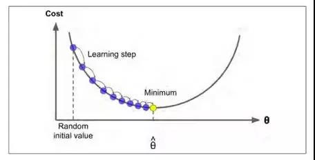 假设浓雾下,你迷失在了大山中,你只能感受到自己脚下的坡度。为了最快到达山底,一个最好的方法就是沿着坡度最陡的地方下山。这其实就是梯度下降所做的:它计算误差函数关于参数向量$\theta$的局部梯度,同时它沿着梯度下降的方向进行下一次迭代。当梯度值为零的时候,就达到了误差函数最小值 。