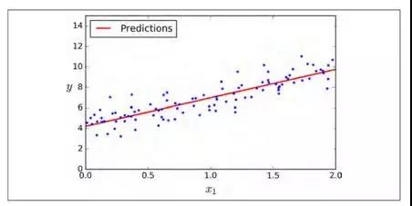 >>> X_new = np.array([[0],[2]]) >>> X_new_b = np.c_[np.ones((2, 1)), X_new] >>> y_predict = X_new_b.dot(theta.best) >>> y_predict array([[4.21509616],[9.75532293]])