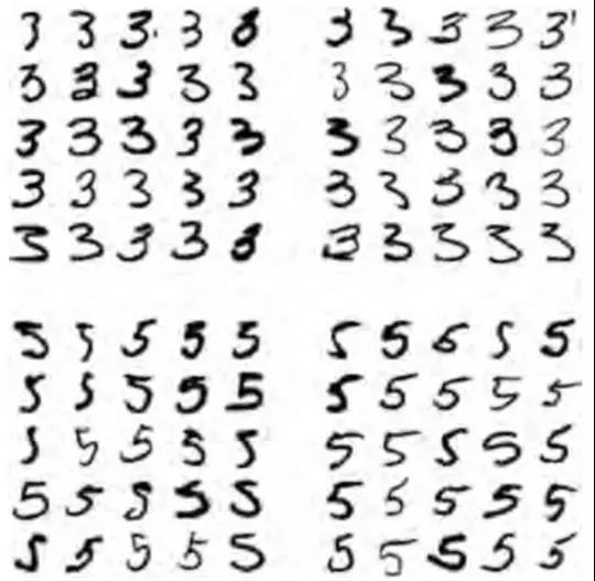 分析独特的误差,是获得关于你的分类器是如何工作及其为什么失败的洞见的一个好途径。但是这相对难和耗时。举例子,我们可以画出数字 3 和 5 的例子