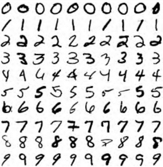 图3-1 展示了一些来自 MNIST 数据集的图片。当你处理更加复杂的分类任务的时候,它会让你更有感觉。