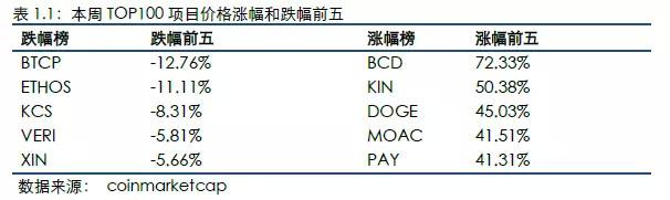 本周区块链资产市值普遍上涨,TOP100项目中88个项目市值有不同程度上涨,12个项目下跌。据coinmarketcap数据,截止2018年7月23日,全球区块链资产市值前100项目总市值为2,699.63亿美元,上涨12.70%,共3个项目新进入TOP100。其中BCD市值涨幅最大,较上周上涨72.15%,市值排名从上周第39名上升12位至第27名。KIN涨幅第二,市值较上周上涨50.54%,市值排名从上周第85名上升16位至第69名。本周共有3个新项目进入TOP100,分别为PAY(市值上涨41.22%,排名上升21位),NXT(市值上涨22.83%,排名上升10位),SMART(市值上涨15.26%,排名上升9位)。TOP100项目市值排名变化最高项目为PAY,排名上升21位升至第86名。本周TOP100项目代币价格涨幅最大的为BCD,涨幅达72.33%,跌幅最大的为BTCP,跌幅达12.76%。7月23日,Bitcoin价格为7426.22美元,较上周上涨17.94%,Ethereum价格为463.78美元,上涨5.75%。