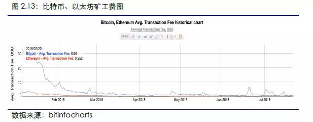 本周比特币矿工费上升、以太坊矿工费大幅下降。截止2018年7月22日,比特币当日平均每笔矿工费为0.66USD,环比上升9.63%,以太坊每笔矿工费为0.252USD,环比下降92.7%。