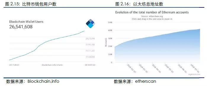 本周比特币地址数量增速、以太坊地址数量增速均加快。根据blockchain.info数据计算,截止7月22日,blockchain钱包用户总数达26541608个,新增272066个。根据etherchain数据计算,截止7月22日,以太坊地址总数为41582474,本周新增地址数为616393。