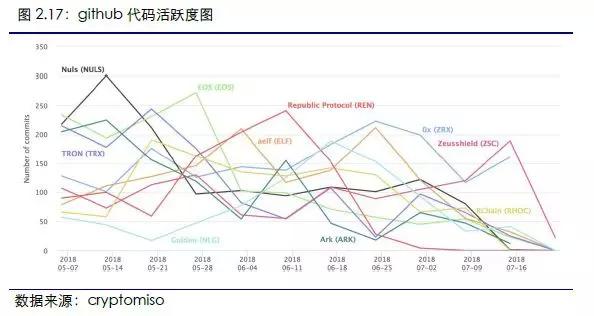 ZSC为上周github代码活跃度最高项目。2018年7月16日至7月22日,github代码中ZSC活跃程度最高,本周共计189 commits,环比上周上升57.5%。其次为ZRX,达161 commits。