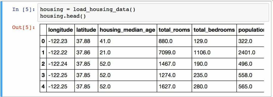 使用DataFrame的head()方法查看该数据集的前5行(见图 2-5)。
