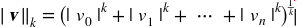 更一般的,包含n个元素的向量v的ℓk范数(K 阶闵氏范数),定义成