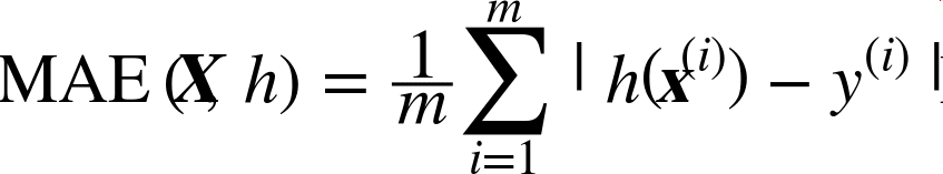虽然大多数时候 RMSE 是回归任务可靠的性能指标,在有些情况下,你可能需要另外的函数。例如,假设存在许多异常的街区。此时,你可能需要使用平均绝对误差(Mean Absolute Error,也称作平均绝对偏差),见公式 2-2: