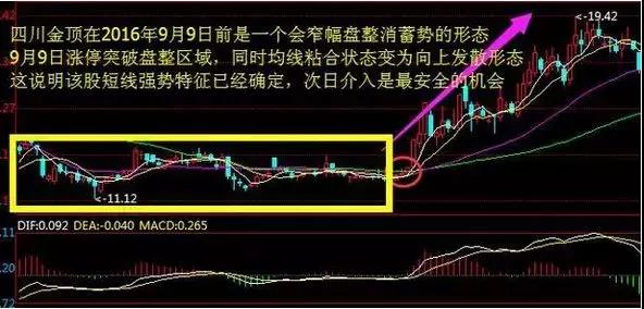 大家都知道均线粘合是一个蓄力的形态,意味要变配,均线粘合要辨别是向上还是向下,只有向上才可以参与,切记。