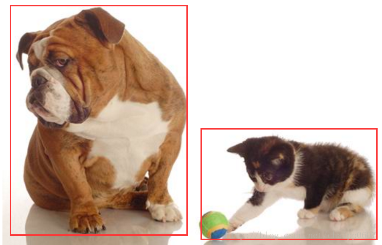我们知道Fast R-CNN的区域建议同样是ss算法生成的,那么一幅图片在生成多个建议框时(假设是2个)可能会出现一些像素重叠的情况,就像下面这样: