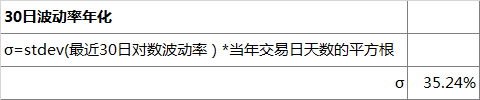 第一,注意这里的30日是30个交易日,因为周末不交易,如果将周五的收盘价算作周末的价格放进去的话,会降低波动率;