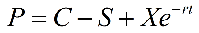 有了BS公式,就可以算出看涨期权的价格了。那么看跌期权呢?根据期权平价公式(Put-Call Parity),可以由看涨期权得出: