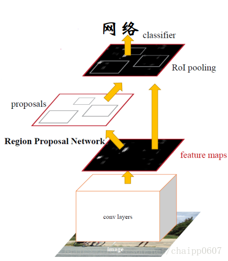 首先,上面这张图说明了RPN在Faster R-CNN中的位置,它在CNN卷积后的特征图上做区域建议(大约300个),并根据RPN生成的区域建议对feature maps做提取,并对提取后的特征做RoI pooling。在RoI pooling之后的东西就和Fast R-CNN一样了。
