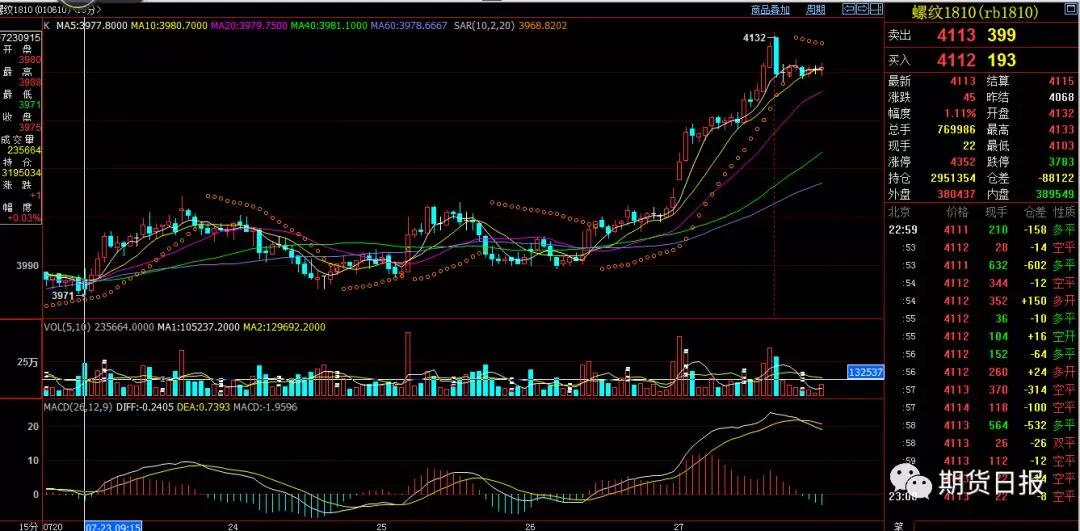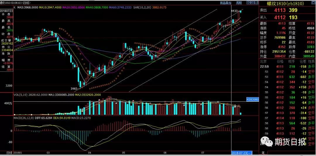 国家的利益指明了方向,环保供给侧有力了方向,曾经的大幅度贴水现货同向了方向(抑制深跌),资金放水的相对宽松支持了方向,各地的基础设施建设需求与库存的低位表现同样支撑了方向,技术上的大均线3912的突破对前高的期待也决定了方向(这个几周之前也已表述)……林林总总根植于心的认知,让优秀的交易员可以忽略波动,以道为本、以术为基,化繁为简,让市场褒奖。