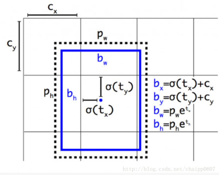 4是δ(tx)δ(tx),δ(ty)δ(ty),txtx,tyty,这4个数会被用来计算边框的位置和大小;