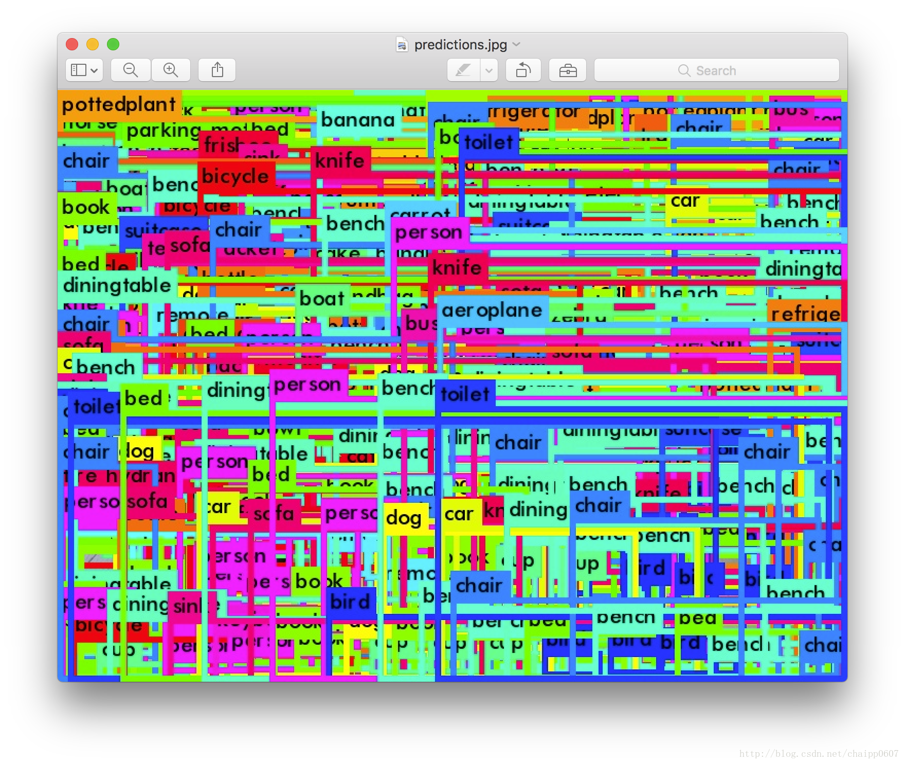 在darknet的官网给出了一个图,说明了如果阈值取的非常小的话,就会是这样: