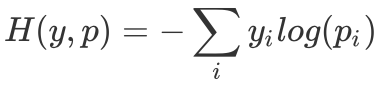 下面我们来看一下对模型优化真正起到作用的损失函数——交叉熵损失函数。交叉熵函数体现了模型输出的概率分布和真实样本的概率分布的相似程度。它的定义式就是这样: