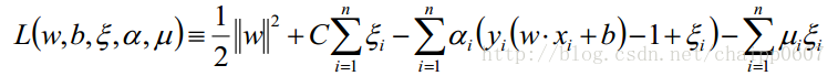 在前面我们就已经知道,有了目标函数之后,后面的工作就是引入拉格朗日乘子,对偶问题转化后求导,解出拉格朗日乘子后反带回去求w和b,这个讨论对于引得目标函数来说是一样的,而且推导的过程在前面四部分中解释的已经非常清楚,对于新的问题,只是加了两个参数: