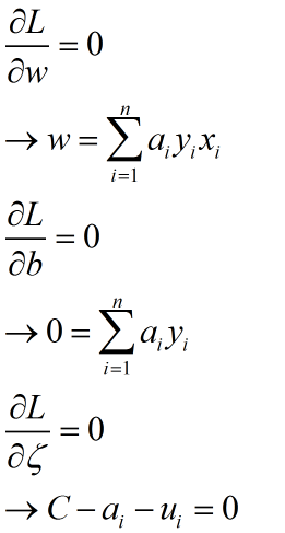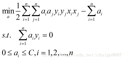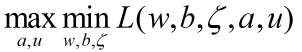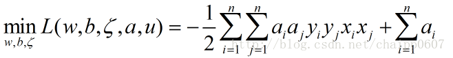 其中,a和u是拉格朗日乘子,对偶后就变成了: