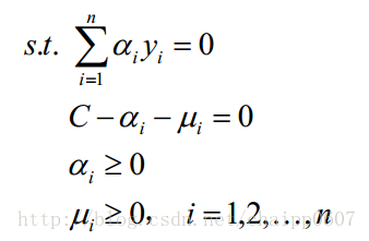 这个约束条件中的后三个是可以转化的,因为u是一个大于等于0的数(拉格朗日性质决定的),同时由于C-a=u,即C-a>=0。同时由于a>=0,后三个条件最后就变成: