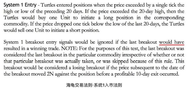 ②如果上次突破是可以赢利的突破,那么在下次突破时忽略①。##可以赢利的突破不代表真的赢利,也包括被②忽略但事后发现能赢利的突破。这部分的描述可能会引起争议,我们将会附上原文中的描述,并且在第三部分里面测试只包含①和包含①②的情况。