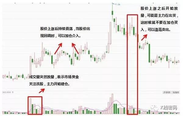 3、量价分析很关键,我们时刻都要关注成交量,尤其是突然出现放量的个股,如图,该股在上涨的趋势中出现放量,很有可能是主力在准备建仓,投资者可以积极的介入。相反,如果股价呈现出下跌的趋势,股价出现放量,很可能就是主力在出货,投资者要保持警惕,及时股价小幅回调,也不要加仓买入。