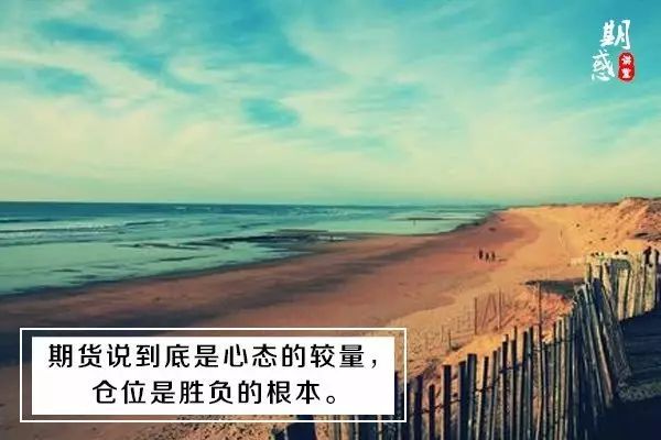 3、【轻仓!轻仓!】期货说到底是心态的较量,仓位是胜负的根本。只有轻仓才没有压力,也只有轻仓才能保证完全按照交易系统进行操作,而不至于使技术操作变形。同时,轻仓也能够使你的资金禁得起行情的剧烈震荡,不至于在看对行情的情况下,被清洗出局,从而抓住大的趋势行情。