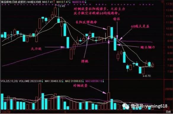 (1)当股价形成头部后开始缓慢下跌,如跌破60日平均线则可认为大势所趋,跌势难免。庄家为了加快出货,有时会拉出长阳线,然后在高位开始连续地派发。这根长阳线是反弹逃命的机会。
