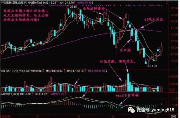 (2)有时股价已上升一段时间,但跟风的接盘并不大,使庄家很难出货。于是有的庄家会采用巨量对倒拉出长阳线,在第二天股价冲高的过程中迅速派发,拉出巨量长阴线,这种拉高的长阳也是逃命的机会。