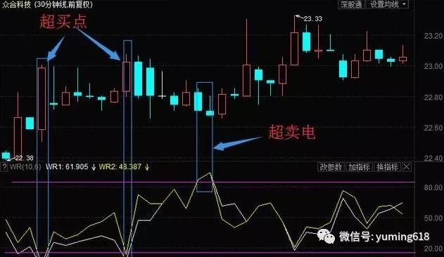 1、当W%R>85时,表明市场已经超卖,股价即将见底,是买入信号。