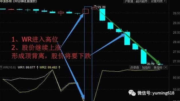 2、当W%R<15时,表明市场已经超买,股价即将见顶,是卖出信号。
